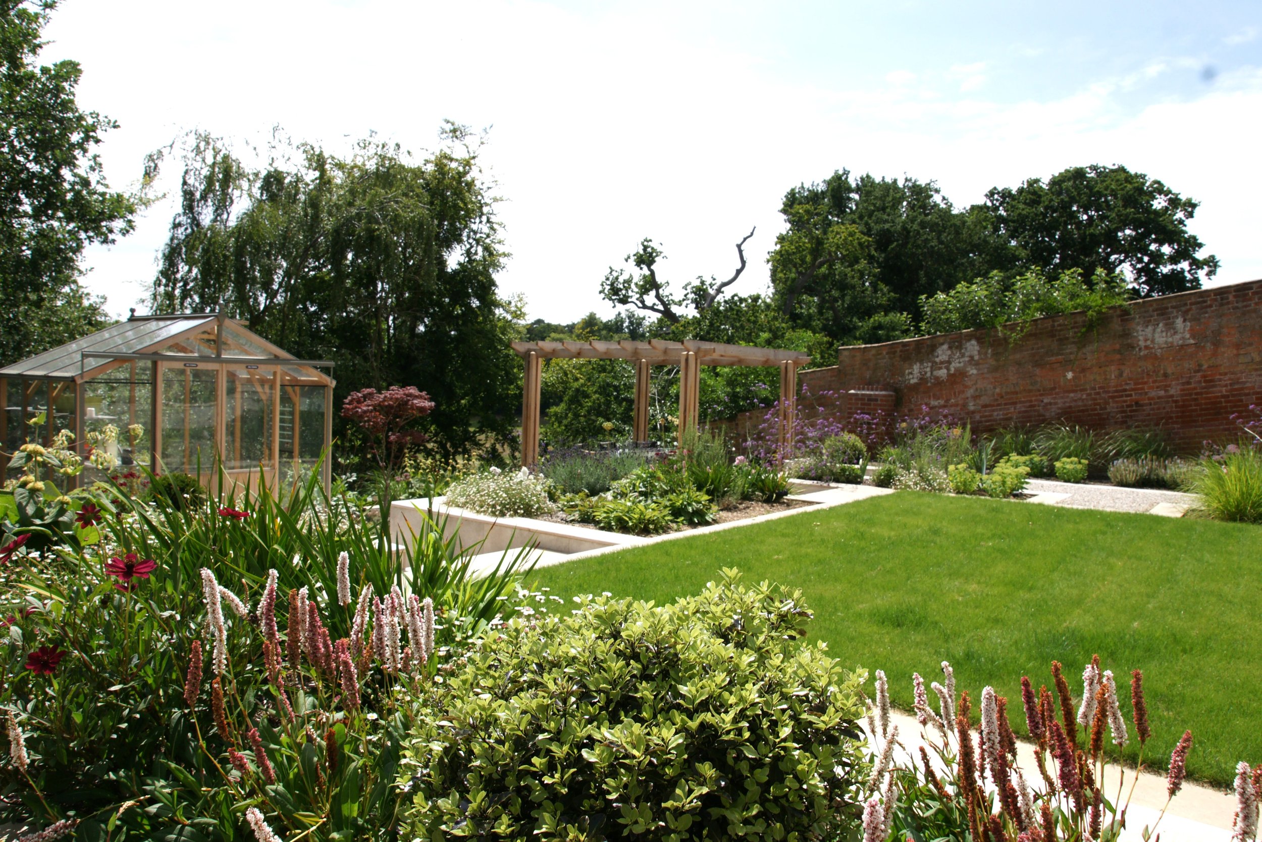 A beautiful listed town house needing an updated refresh. The brief requested a sleek, neutral palette to the hard landscaping and soft airy planting. The level changes in the garden were emphasised with raised beds at various heights to frame the formal lawn, progressing to a sunken seating area covered by a cedar pergola complementing the cedar framed greenhouse. Planting inlcuded Persicaria affinis 'Donald Lowndes' , Phlomis russeliana, Cosmos 'Chocolate Cherry', Pennisetum hameln, Acer 'Bloodgood', and Pittopsorum 'Tom Thumb'.